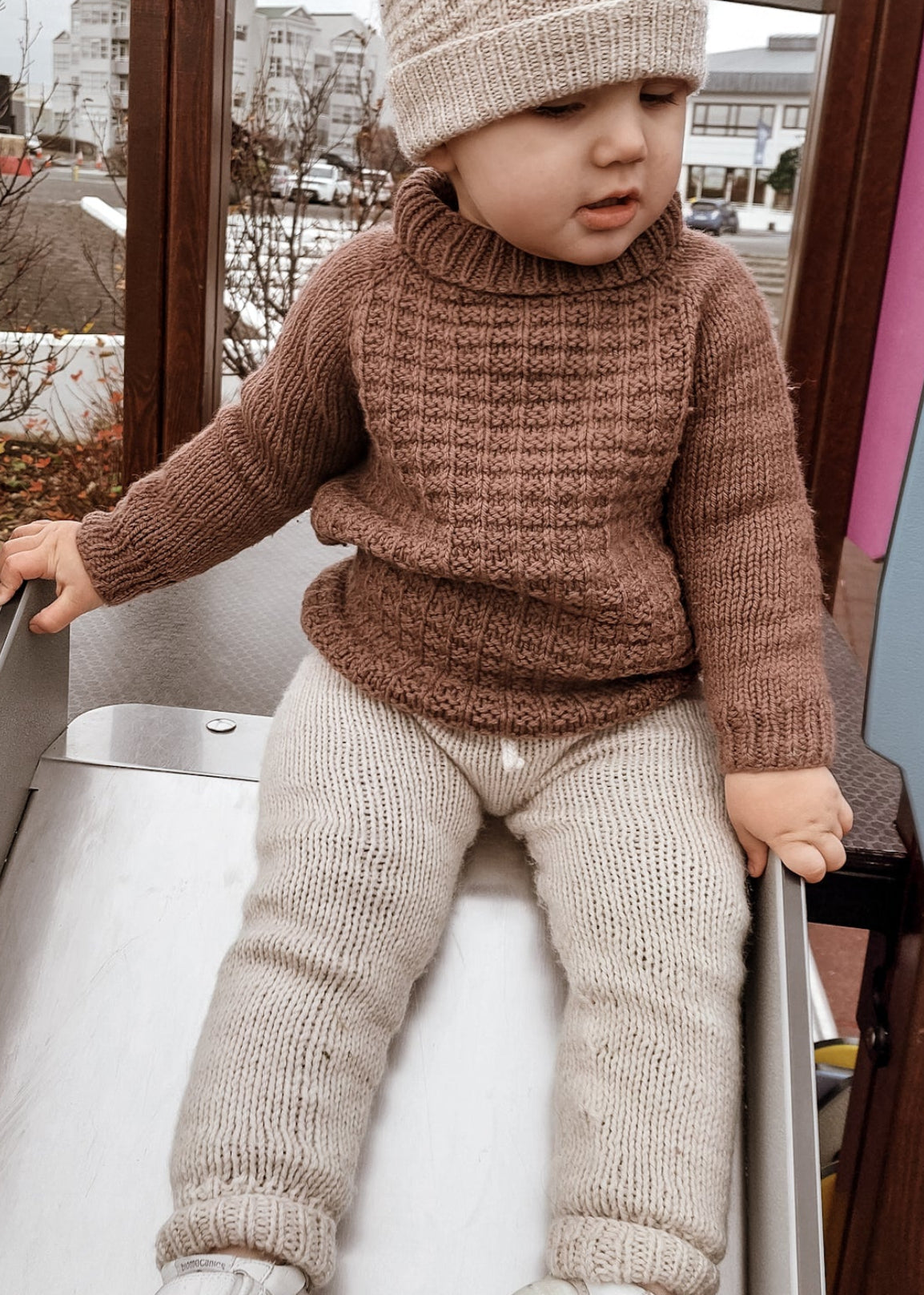 Målene i oppskriften er beregnet ut fra strikkefastheten på oppgitt garn. Det er også hvordan du, kjære strikker, jobber med garnet. Jeg anbefaler at du tar mål av den som skal bruke buksene og bestemmer størrelsen ut fra det.