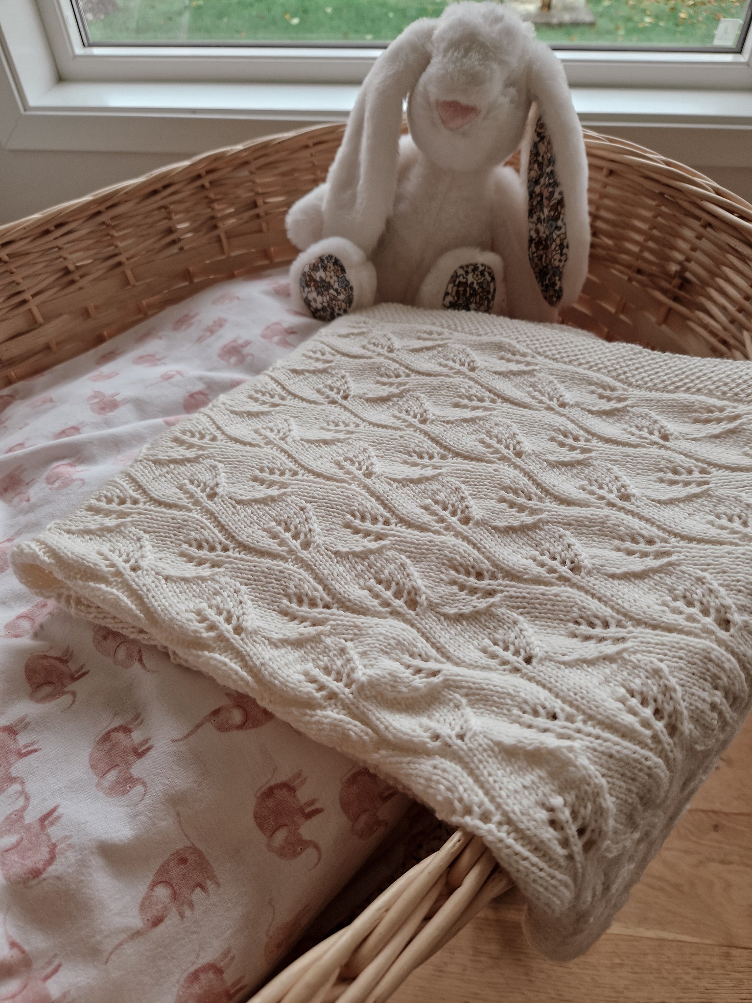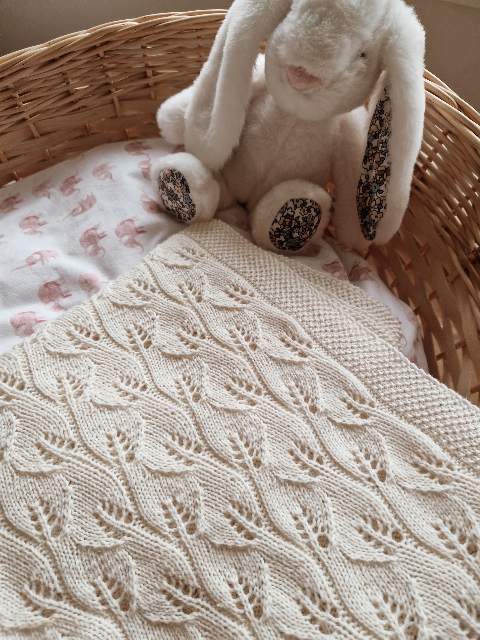 Dásamlega fallegt teppi með Lauf munstri sem er alltaf svo klassískt. Þetta verður svo fullkomið í töskuna á fæðingardeildina.