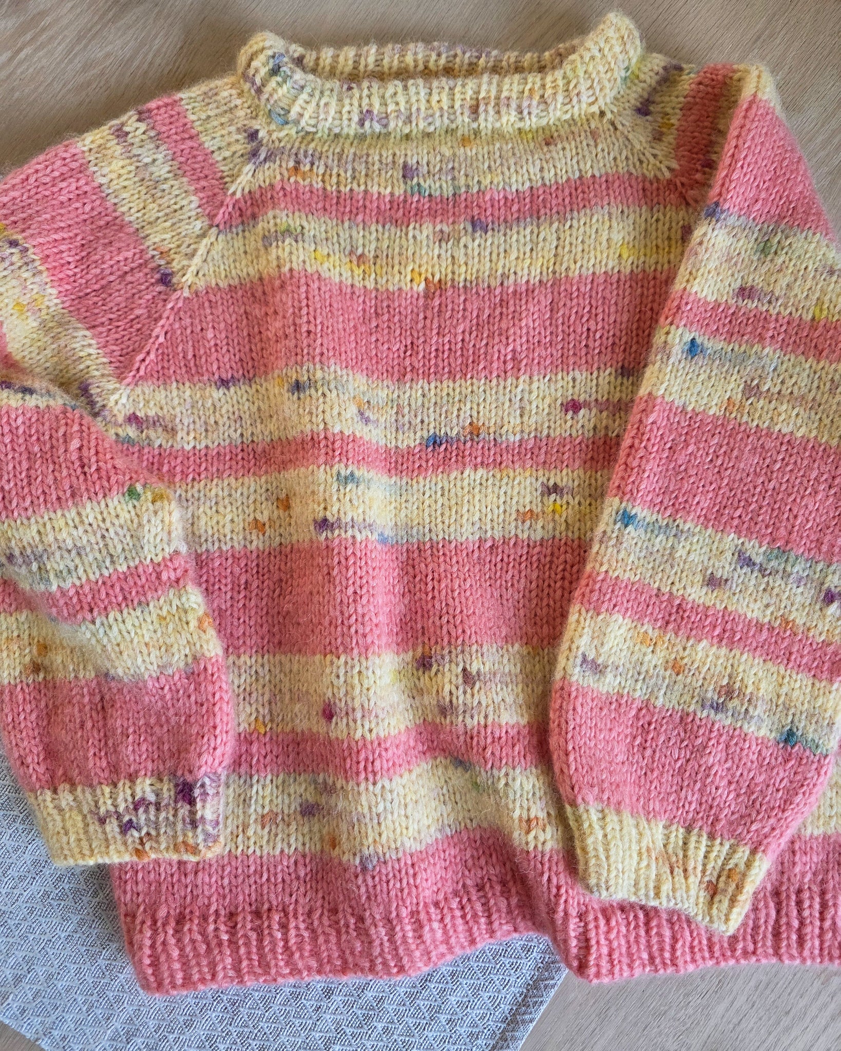 Peysan getur verið einlit með sprengdu garni eða með röndum að eigin vali og gaman að láta hugmyndaflugið ráða